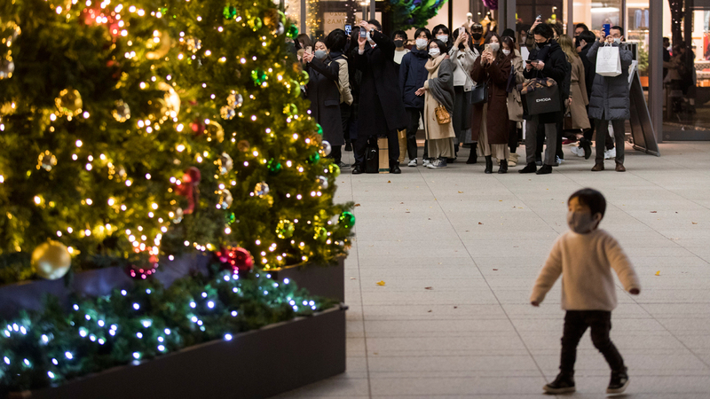 تجمع الناس لالتقاط صور لعرض شجرة عيد الميلاد في طوكيو. أ.ب