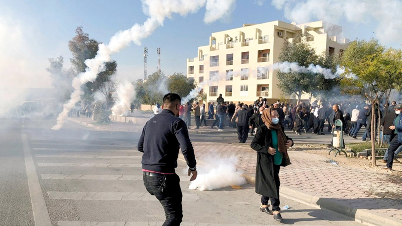 وفي الأيام الأخيرة، عمد المحتجون إلى إشعال النار بالمباني الحكومية، ومقار الأحزاب الكردية. واستخدمت القوات الأمنية الرصاص الحي، والغاز المسيل للدموع لتفريق المتظاهرين، وفق ما ذكره شهود عيان، والعاملون في المجال الصحي، لمحطة «سي إن إن»، دون الكشف عن شخصياتهم.
