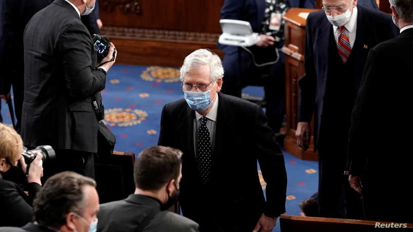 أعلن زعيم الجمهوريين في مجلس الشيوخ الأميركي السيناتور، ميتش ماكونيل، أنّه من غير الممكن إجراء محاكمة «عادلة أو جادّة» للرئيس، دونالد ترامب، في غضون الفترة القصيرة المتبقية له في البيت الأبيض وقبل تولّي الرئيس المنتخب، جو بايدن، السلطة الأسبوع المقبل.