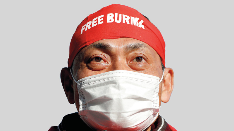 متظاهر يحتج على الانقلاب العسكري في بورما. رويترز