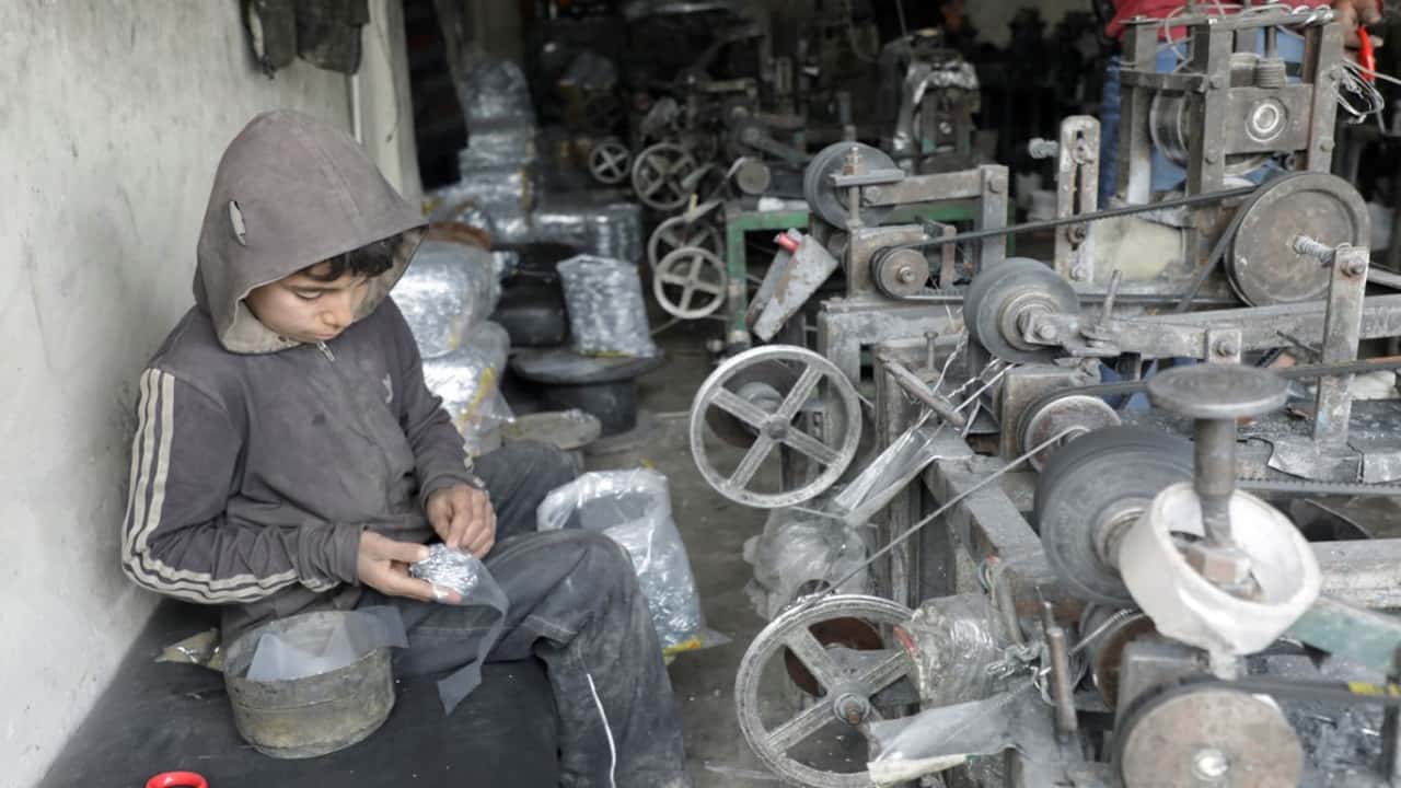 يستيقظ الطفل محمد أبو ردان فجر كل يوم، ويخرج متحدياً البرد للوقوف على جانب الطريق السريع ويشير للسيارات المارة لكي يركب إحداها لمسافة عشرة كيلومترات إلى مصنع لمنتجات التنظيف يعمل فيه.