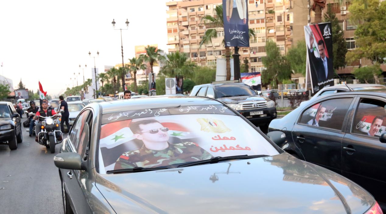 أنصار الرئيس السوري بشار الأسد في أحد شوارع دمشق قبل يوم من الصمت الانتخابي. (إي. بي. إيه)