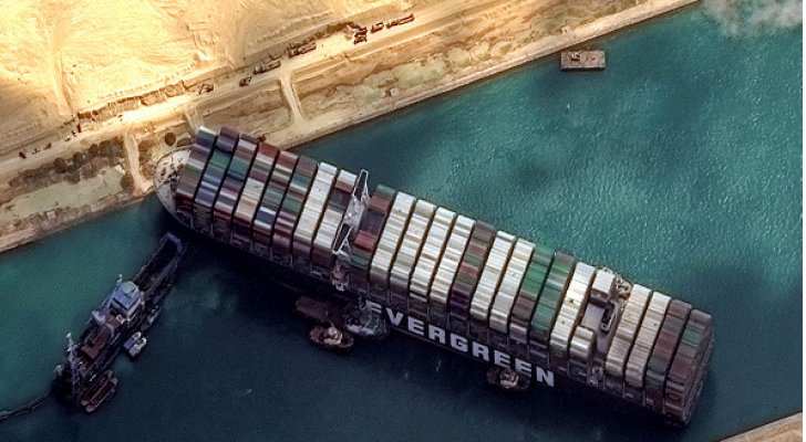 وعلقت إيفر غيفن عرضيا لتسد مجرى القناة وسط رياح عاتية في 23 مارس مما أوقف الملاحة في الاتجاهين وعطل حركة التجارة العالمية.