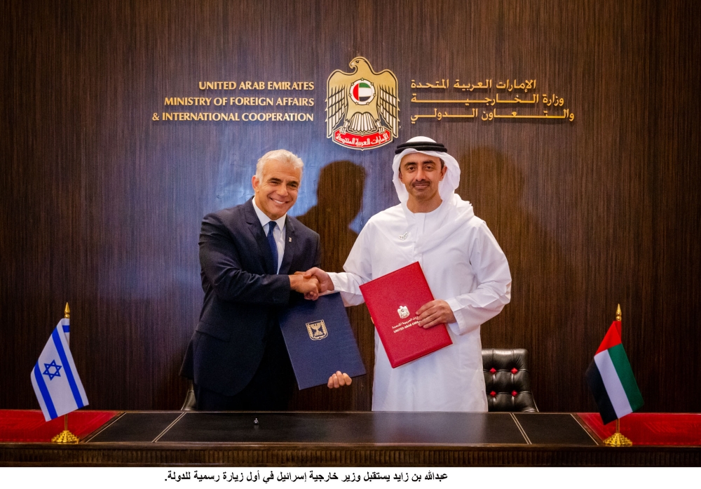 ووقع سمو الشيخ عبدالله بن زايد آل نهيان وزير الخارجية والتعاون الدولي ووزير خارجية دولة إسرائيل يائير لابيد على اتفاقية التعاون الاقتصادي والتجاري بين البلدين.