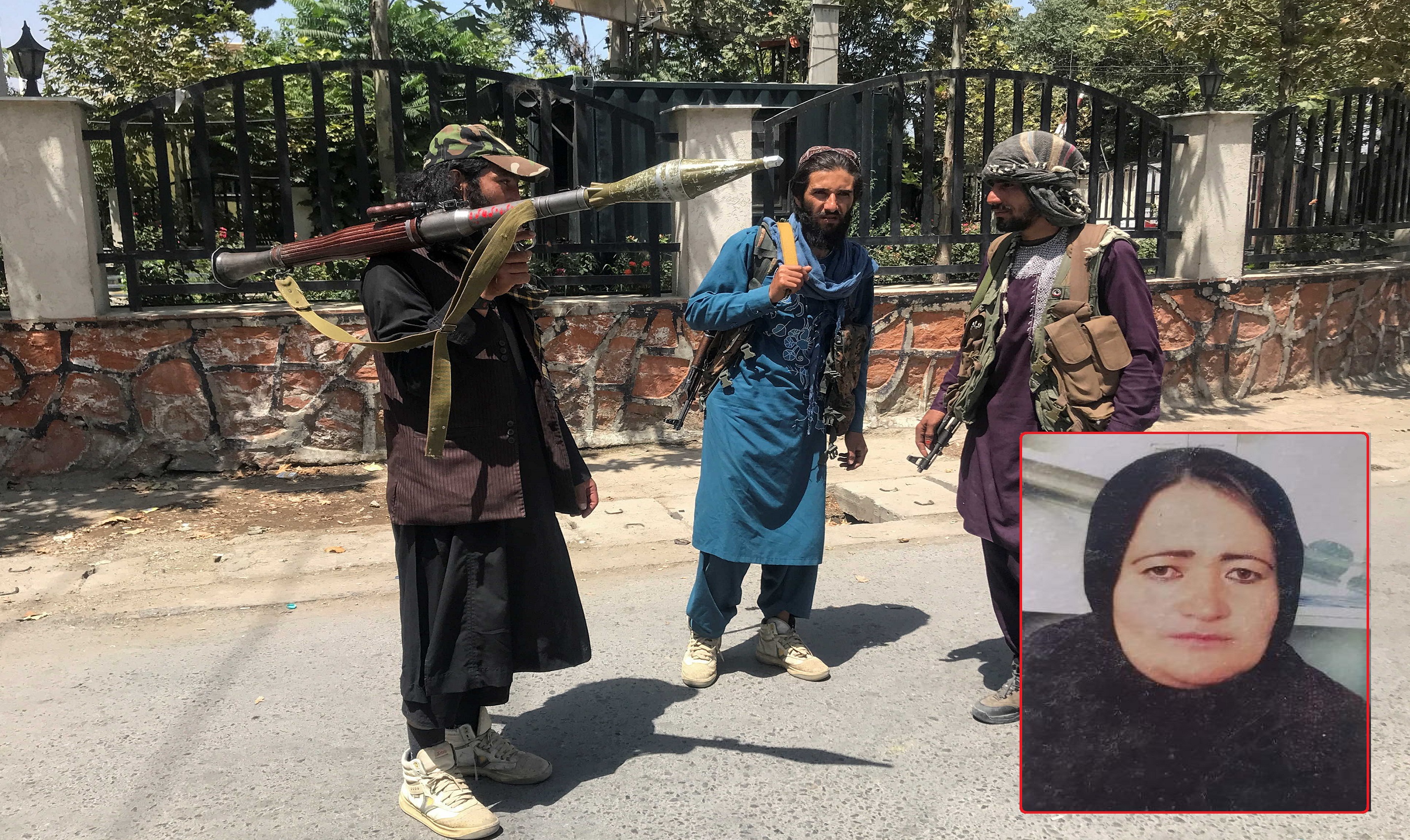 مقاتلون من طالبان، وفي الإطار صورة الشرطية الضحية.