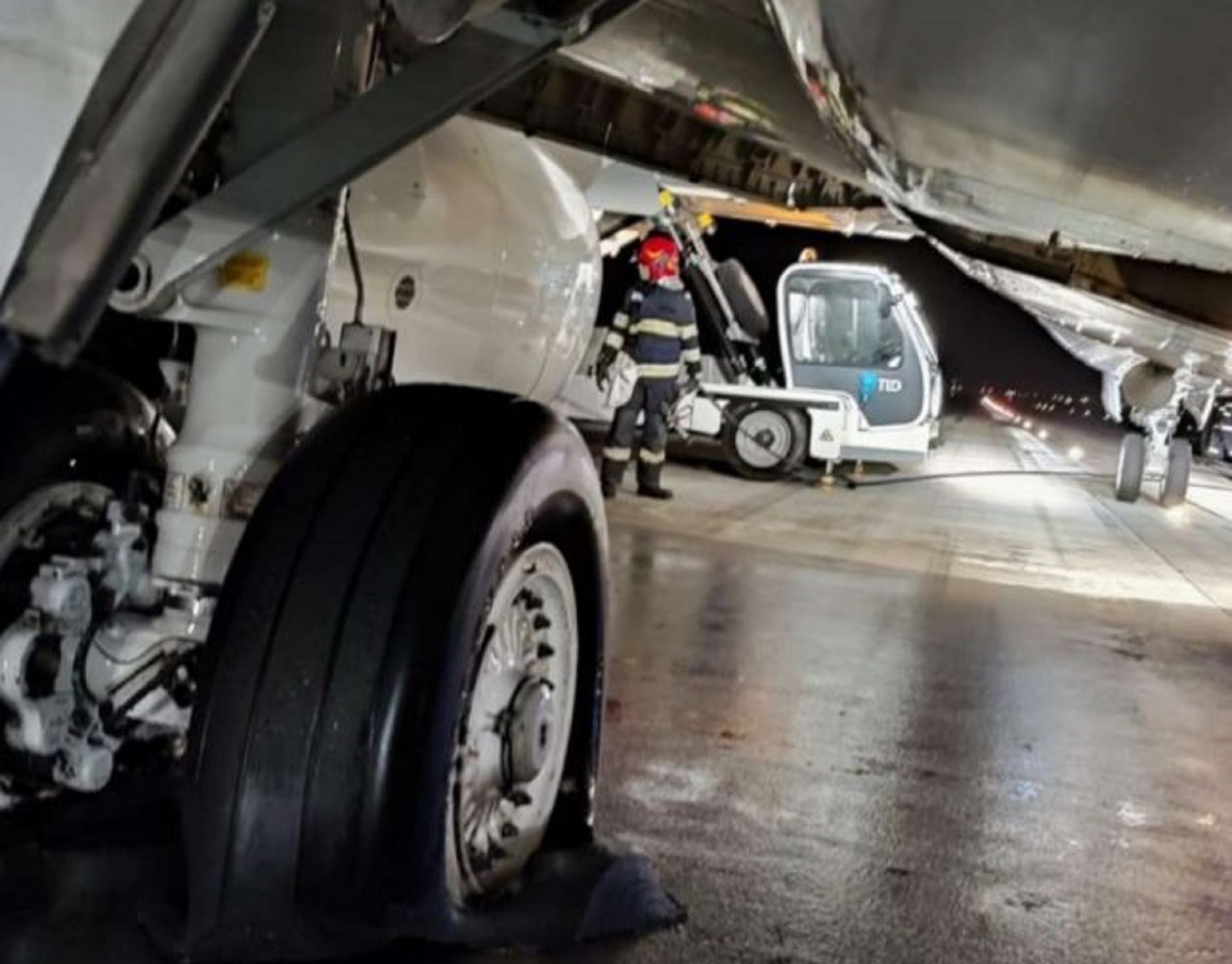 ووفقا لمفتشية حالات الطوارئ، هبطت الطائرة على مدرج مطار كلوج نابوكا الدولي والنيران مشتعلة في الجزء الخلفي لجهاز الهبوط.