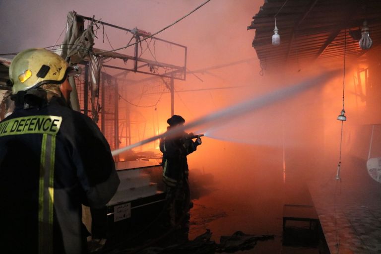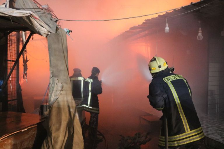 حريق ضخم يأتي على 16 متجراً وسط عمّان