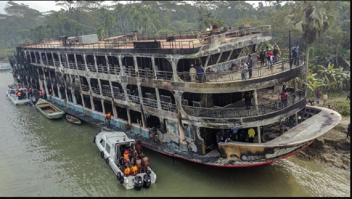 حريق في عبَارة يودي بحياة 30 شخصًا في بنغلاديش