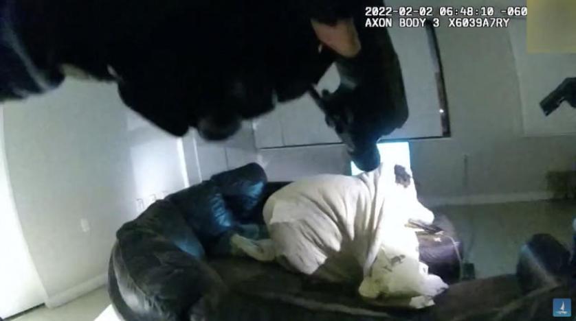 ويظهر مقطع فيديو نُشر مساء الخميس رجال الشرطة وهم يفتحون باب المسكن بمفتاح، ويدخلون ويعلنون عن وجودهم قبل التحرك نحو غرفة المعيشة حيث يرقد رجل على أريكة تحت ملاءات. وعندما نهض الرجل حاملا سلاحا في يده، فتح شرطي النار.