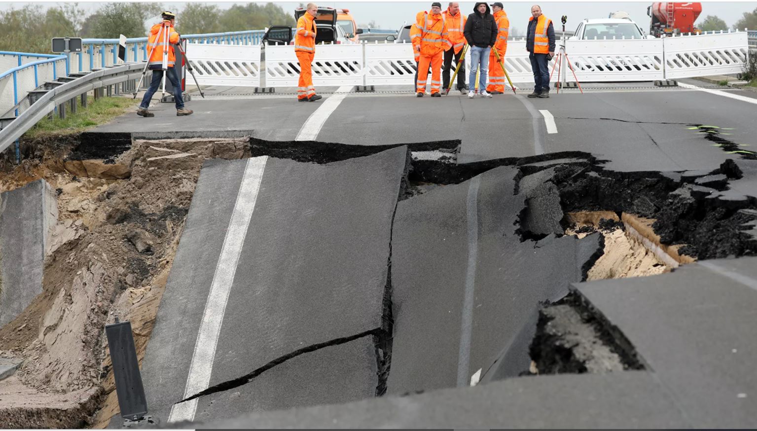 وتسبب الحادث في إخلاء عشرات المنازل المجاورة بعد أن فاض نهر أوتون.