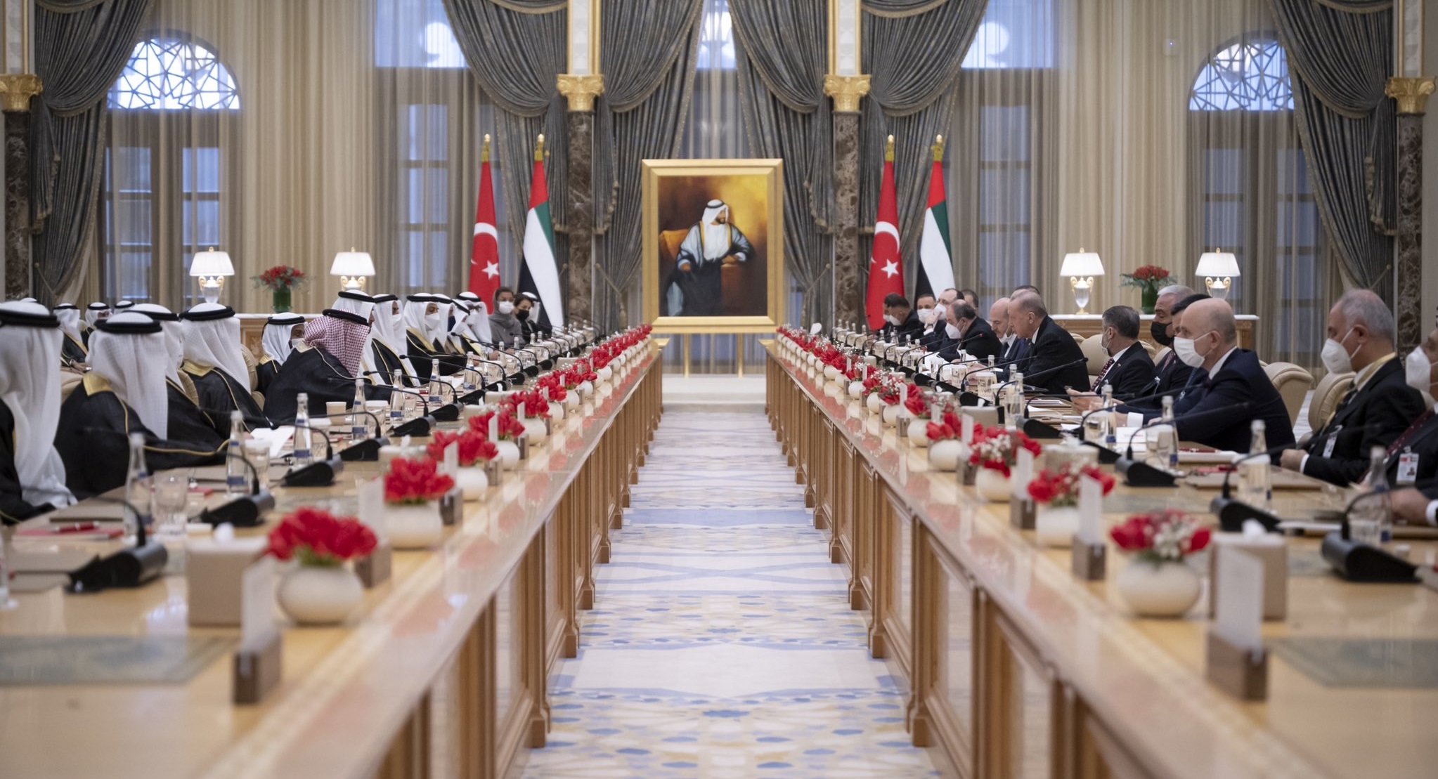جاء ذلك خلال استقبال صاحب السمو الشيخ محمد بن زايد آل نهيان اليوم لفخامة الرئيس التركي والوفد المرافق في قصر الوطن في أبوظبي حيث رحب سموه بزيارة الرئيس رجب طيب أردوغان إلى بلده الثاني دولة الإمارات .. معربا عن تطلعه إلى أن تعطي الزيارة المهمة دفعاً قوياً لمسار تعزيز التعاون وبناء مرحلة جديدة مزدهرة من العمل والشراكات التي تصب في مصلحة البلدين وشعبيهما وجميع شعوب المنطقة.