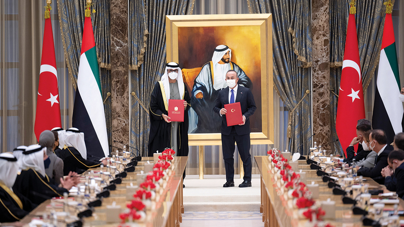 محمد بن زايد والرئيس التركي يشهدان تبادل اتفاقيات ومذكرات تفاهم بين البلدين