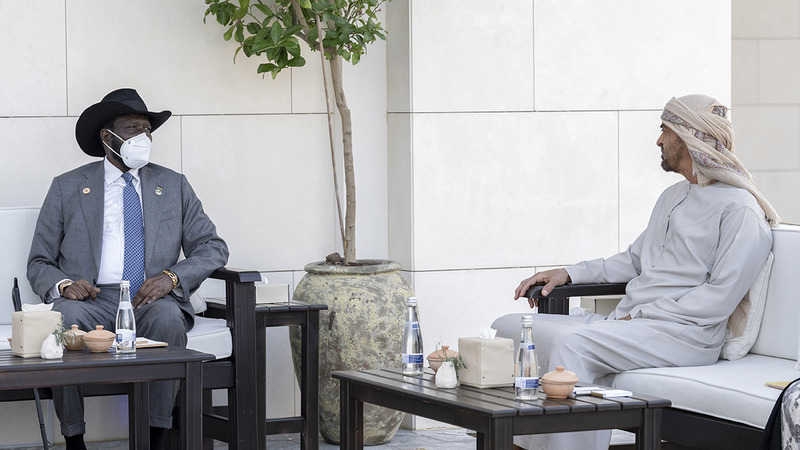 من جانبه، شكر رئيس جمهورية جنوب السودان الصديقة، صاحب السموّ الشيخ محمد بن زايد آل نهيان، لحُسن الاستقبال.. معبّراً عن تقديره لدعم الإمارات لبلاده على المستوى التنموي، ومساعداتها لها في مواجهة جائحة «كورونا».