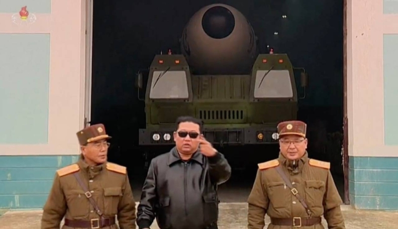 أظهر مقطع مصور نشرته وسائل الإعلام الحكومية الزعيم الكوري الشمالي كيم جونغ أونغ مرتديا سترته الجلدية السوداء المعتادة، وواضعا نظارة شمسية، وهو يمشي على مدرج مطار بيونغ يانغ الدولي أمام صاروخ ضخم، وذلك قبيل لحظات من إطلاقه.