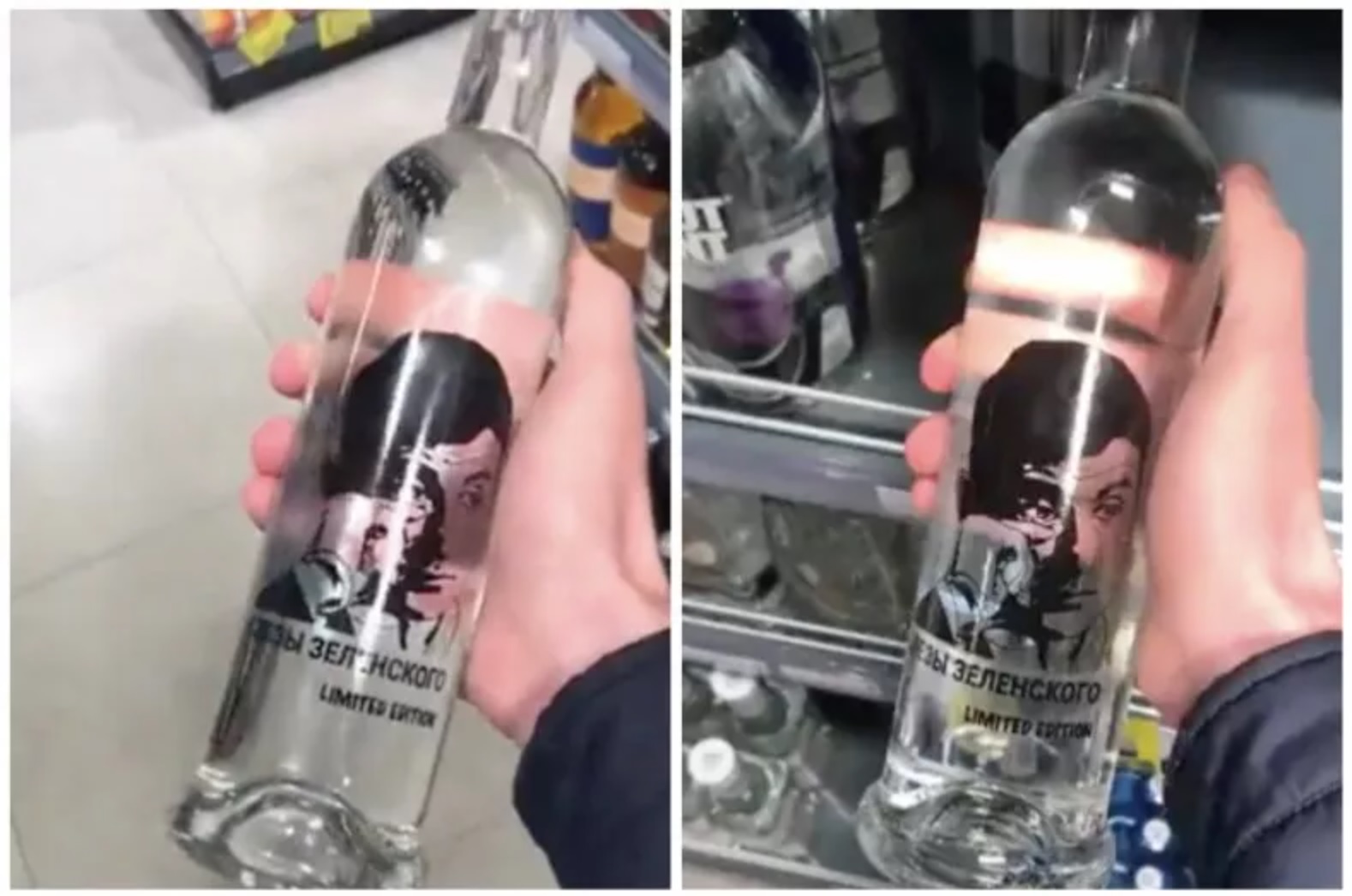 انتشر مقطع فيديو على وسائل التواصل الاجتماعي يُظهر أن زجاجة فودكا تسمى "دموع زيلينسكي" معروضة للبيع في محلات السوبر ماركت في موسكو.