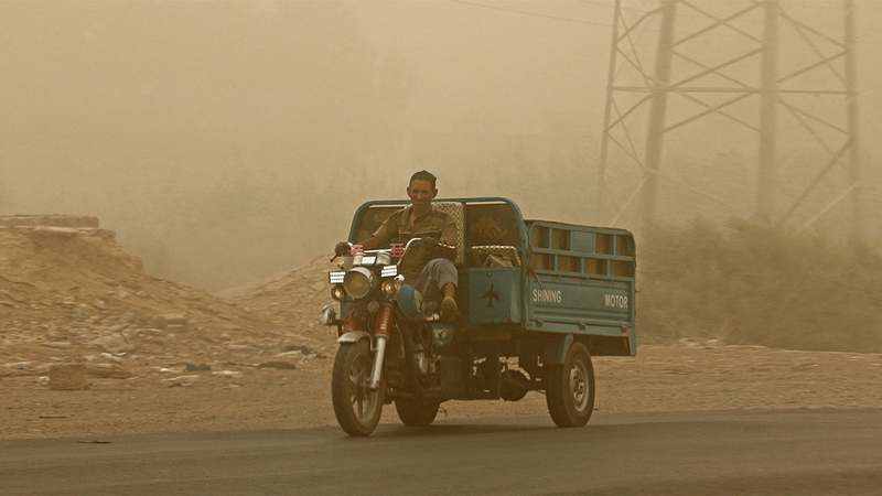 للتنقل في شوارع بغداد على دراجة نارية وتوصيل وجبات الطعام للزبائن يقوم الشاب البالغ من العمر 30 عاماً بتجهيز نفسه قدر الإمكان، فيضع نظارات للاحتماء من الغبار، وغطاءً رمادياً للرقبة يسحبه فوق فمه وأنفه، ليتمكن من التنفس.