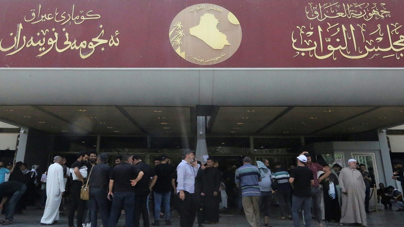 أنصار الصدر يتجمعون خارج البرلمان العراقي. (أ. ف. ب)