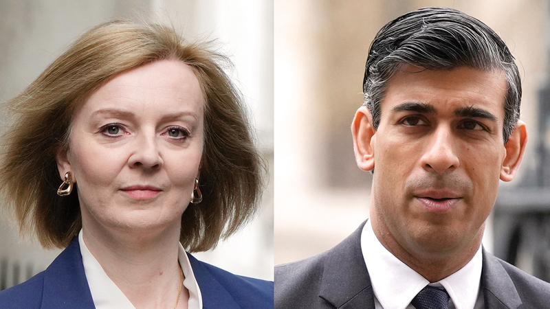 صورة مركبة للمتنافسين على رئاسة الحكومة البريطانية ريشي سوناك ووزيرة الخارجية ليز تروس. أ.ب