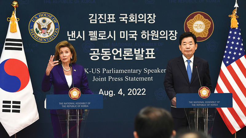 تعهدت رئيسة مجلس النواب الأميركي نانسي بيلوسي ونظيرها الكوري الجنوبي، أمس، بدعم الجهود المبذولة للحفاظ على قوة ردع قوية ضد كوريا الشمالية وتحقيق نزع سلاحها النووي.