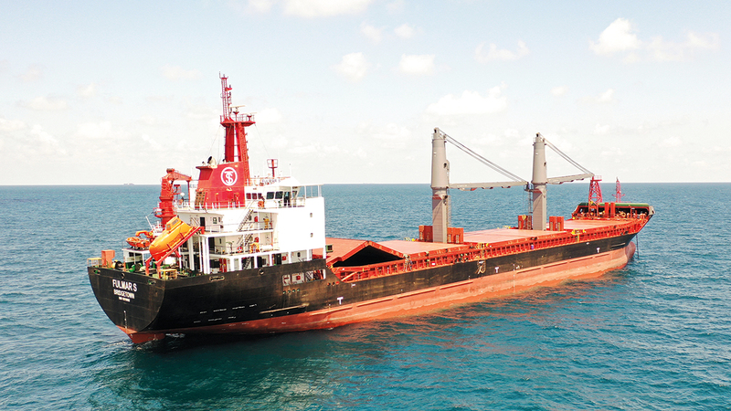 سفينة الشحن «فولمار إس» التي ترفع علم بربادوس في البحر الأسود شمال مضيق البوسفور. رويترز