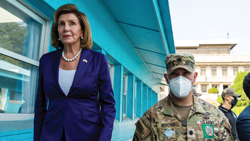 وكانت بيلوسي التي زارت سيؤول بعد تايوان، أرفع مسؤولة أميركية تزور منطقة الأمن المشترك الفاصلة بين الكوريتين منذ التقى الرئيس السابق دونالد ترامب بزعيم كوريا الشمالية كيم جونغ أون في الموقع عام 2019.