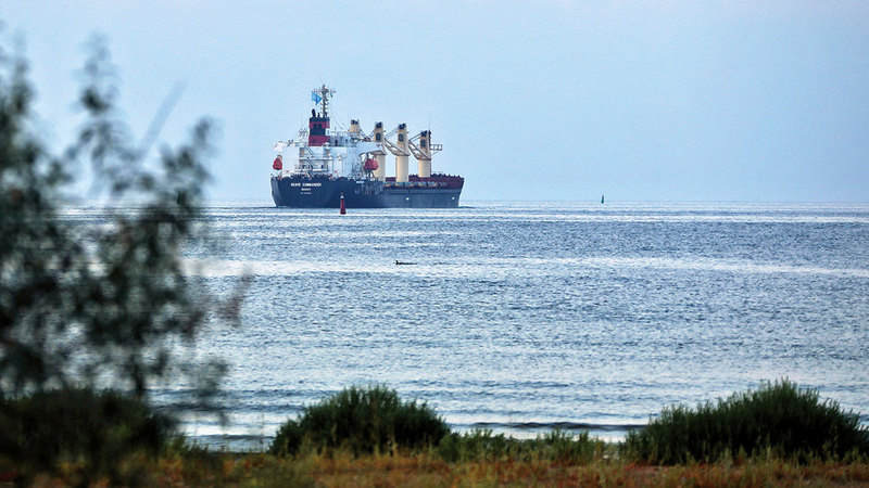 سفينة البضائع «بريف كوماندر» تحمل 23 ألف طن من القمح الأوكراني. أ.ب
