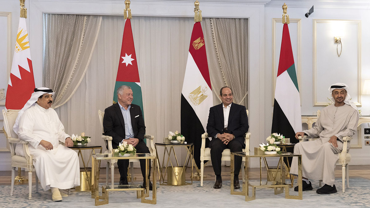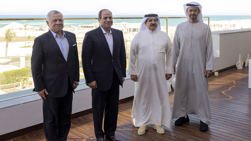حضر صاحب السمو الشيخ محمد بن زايد آل نهيان، رئيس الدولة، أمس، «لقاء العلمين» التشاوري الأخوي الذي دعا إليه رئيس جمهورية مصر العربية الشقيقة عبدالفتاح السيسي، بمشاركة عاهل مملكة البحرين، الملك حمد بن عيسى آل خليفة، وعاهل المملكة الأردنية الهاشمية، الملك عبدالله الثاني بن الحسين.