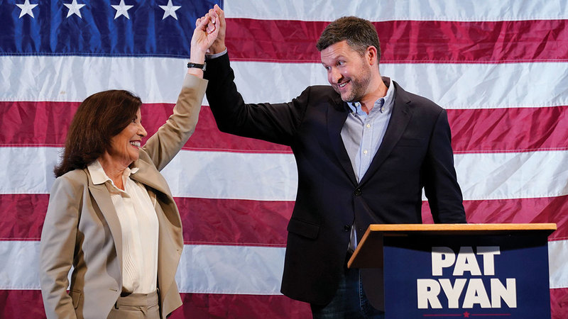 بات راين وحاكمة ولاية نيويورك كاثي هوشول خلال تجمّع انتخابي في كينغستون. أ.ب