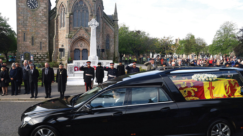 نعش الملكة إليزابيث يمر عبر قرية بالاتير بالقرب من بالمورال. رويترز