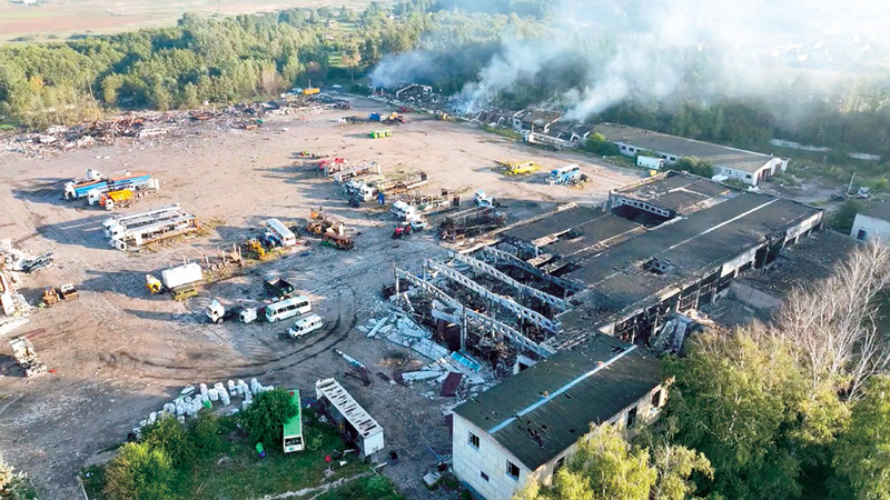 لقطات لطائرة بدون طيار لمبانٍ مدمرة ومركبات متضررة نتيجة هجوم روسي على منطقة خاركيف. رويترز