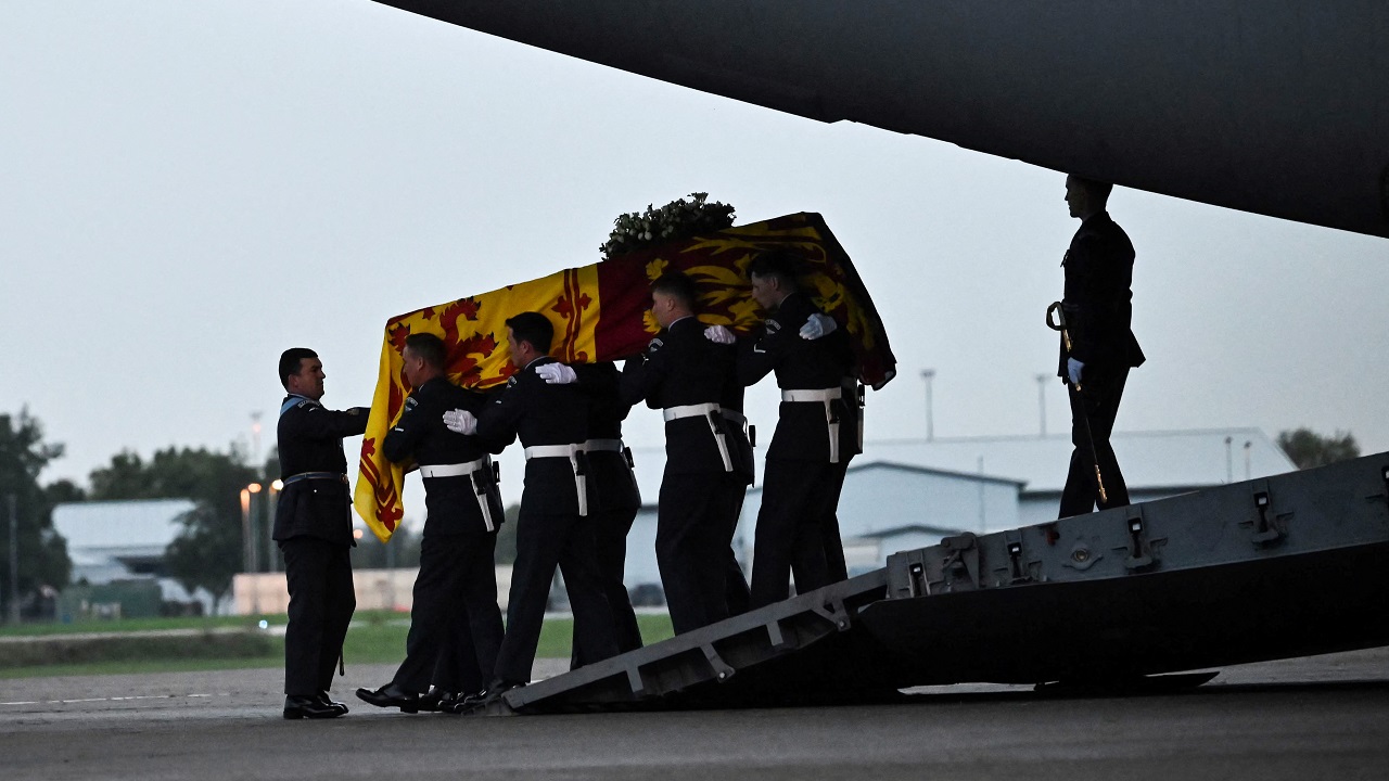 هبطت طائرة تحمل جثمان الملكة إليزابيث الثانية في قاعدة تابعة لسلاح الجو الملكي في غرب لندن اليوم الثلاثاء مع توجه النعش إلى قصر بكنغهام قبل نقله إلى البرلمان غدا الأربعاء.