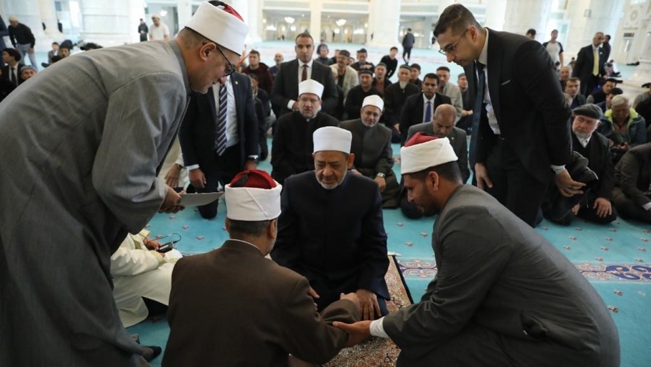 وأمّ شيخ الأزهر الشريف رؤساء وأعضاء الوفود الإسلامية المشاركة في المؤتمر لصلاة الظهر في مسجد "حضرة السلطان".. و تبادل عقب الصلاة أطراف الحديث مع رؤساء وأعضاء الوفود الإسلامية المشاركة في المؤتمر، واستمع لبعض طلَّاب كازاخستان الحاصلين على منح دراسية للدراسة بجامعة الأزهر.