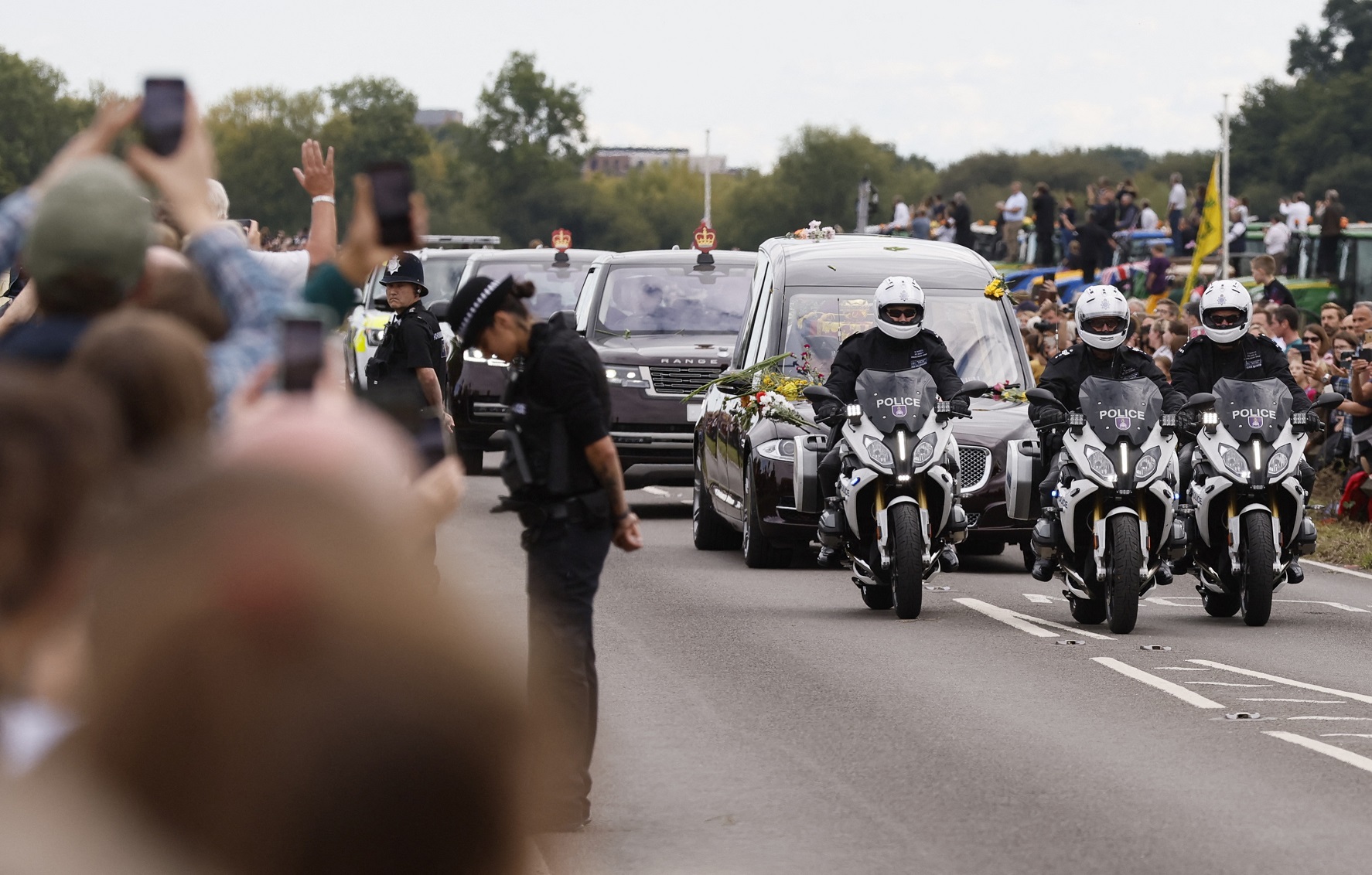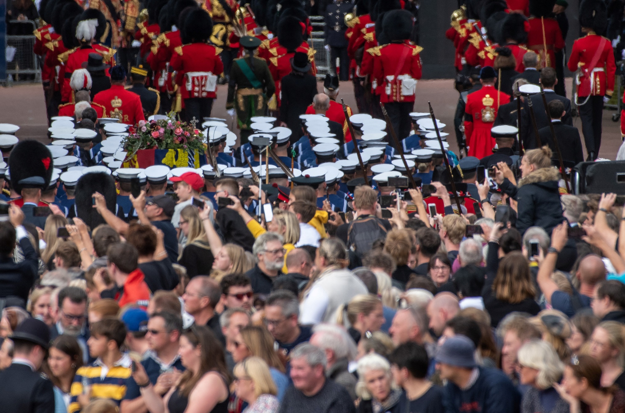 قبل أكثر من ساعة من بدء مراسم الجنازة، أُعلن عن امتلاء جميع المناطق التي تتسنى منها مشاهدة الموكب في وسط لندن. وقالت السلطات إنها تتوقع أن عدد من توافدوا إلى العاصمة لمتابعة الجنازة بلغ مليون شخص.