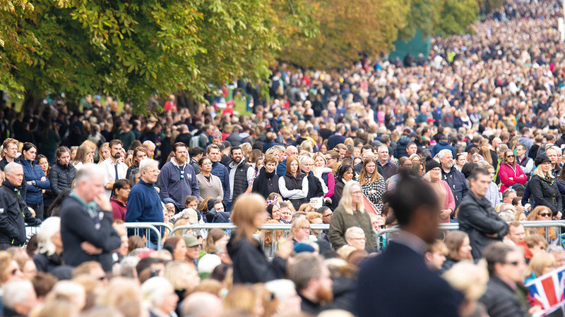 وبينما كان الناس يتجهون صوب طريق الموكب، كان البعض صامتاً وحزيناً ويرتدي ملابس سوداء، وجاءت الحشود من جميع أنحاء بريطانيا والعالم. وكان هناك أناس من مختلف الأعمار، من الصغير إلى الكبير، منهم من وصل على مقاعد متحركة، ومنهم الأطفال الذين جاءوا في عربات يجرها الآباء.