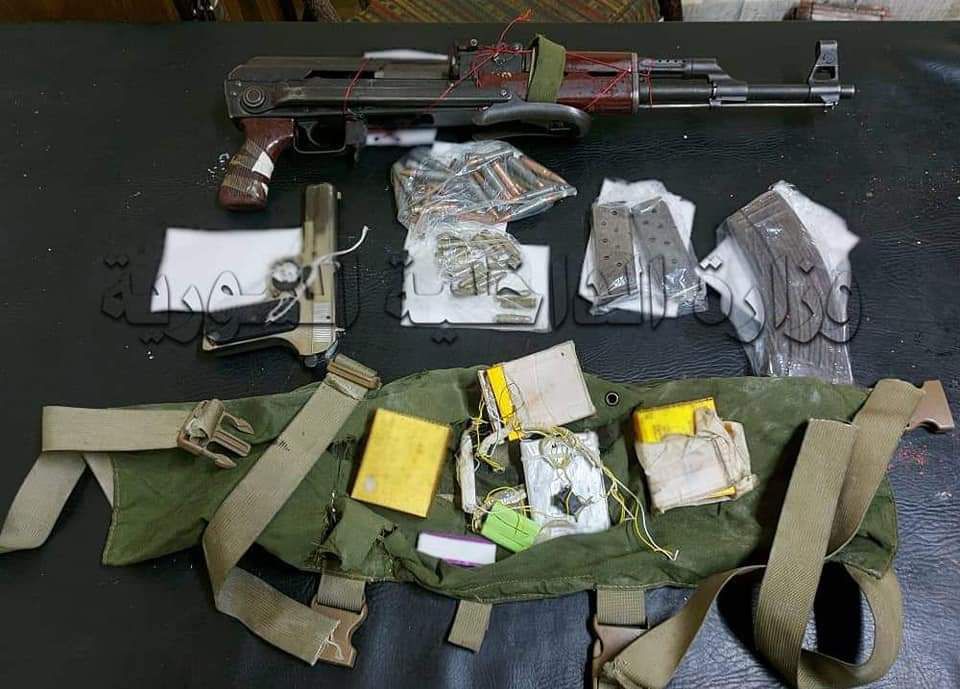 وأشارت إلى أنه «تمت مصادرة الحزام الناسف والبارودة والمسدس الحربيين، ونظم الضبط اللازم، وسيتم تقديم المقبوض عليه إلى القضاء المختص أصولاً».