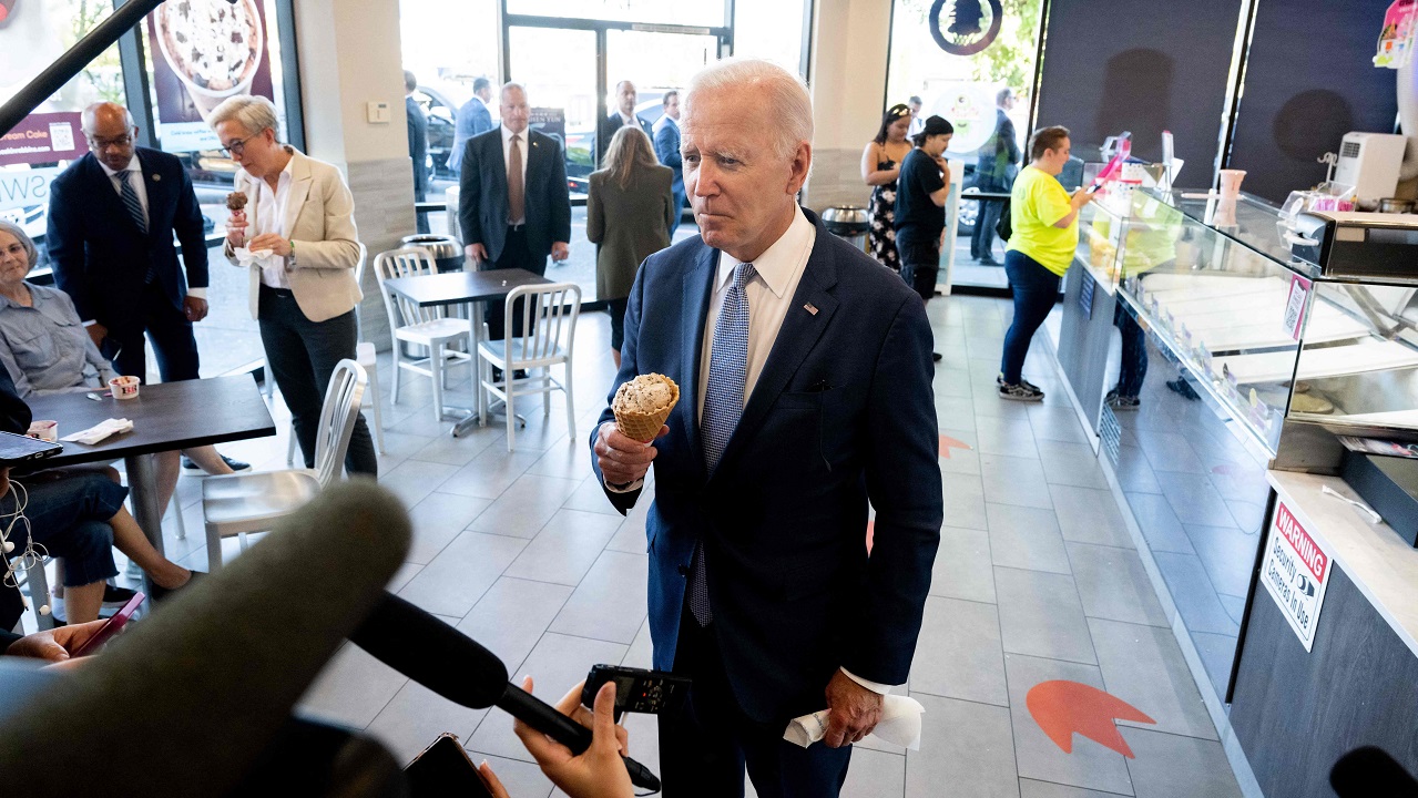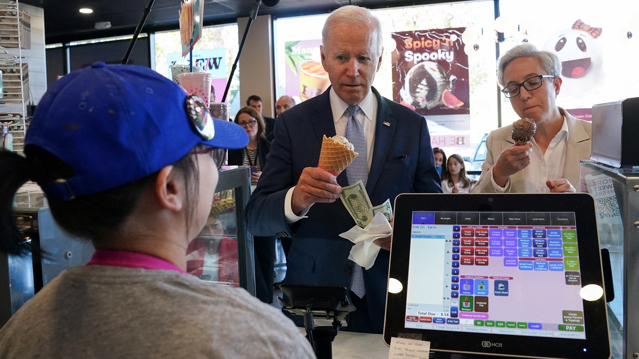 قام الرئيس الأميركي جو بايدن بزيارة مفاجئة إلى أحد محال بيع المثلجات والآيس كريم، في ولاية أوريغون، وأظهرت صور نشرتها وكالات الأنباء الرئيس الأميركي وهو يشتري الآيس كريم ويقوم بالدفع نقداً.