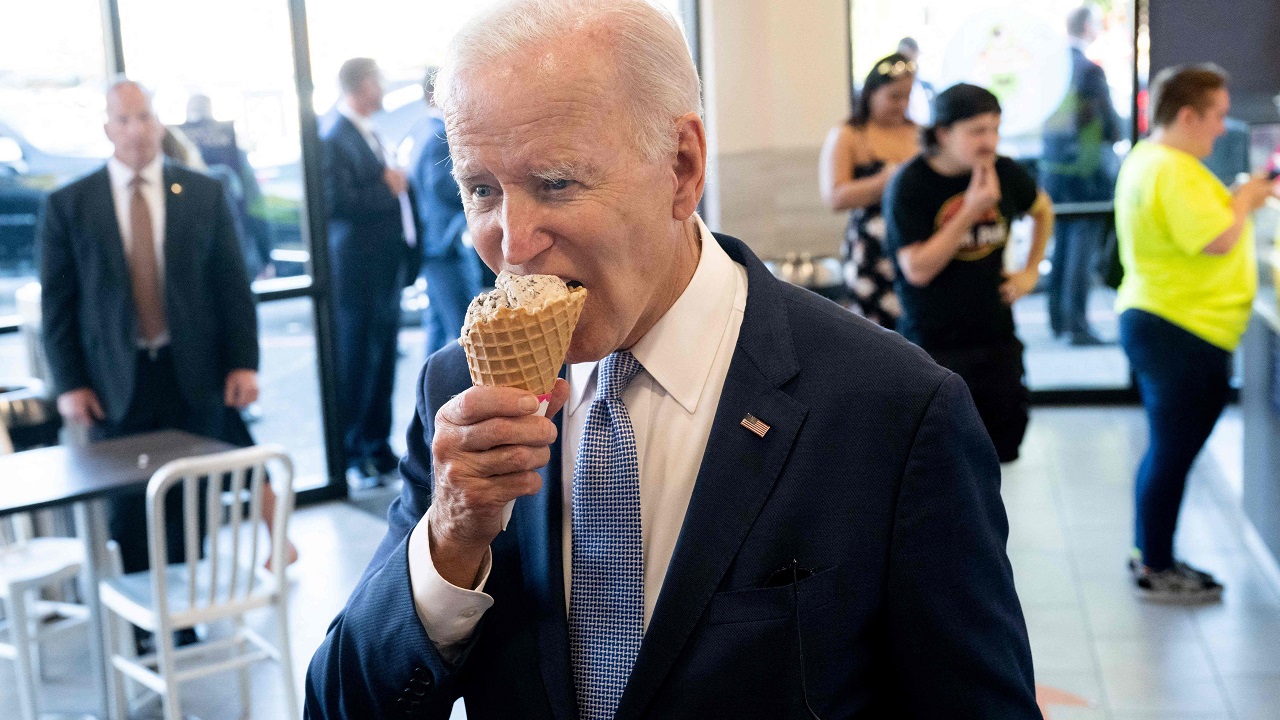 بالصور.. بايدن في حيرة بين نكهات الآيس كريم