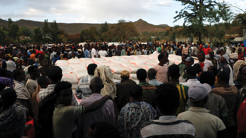 نازحون من إقليم تيغراي يتلقون مساعدات غذائية. أرشيفية