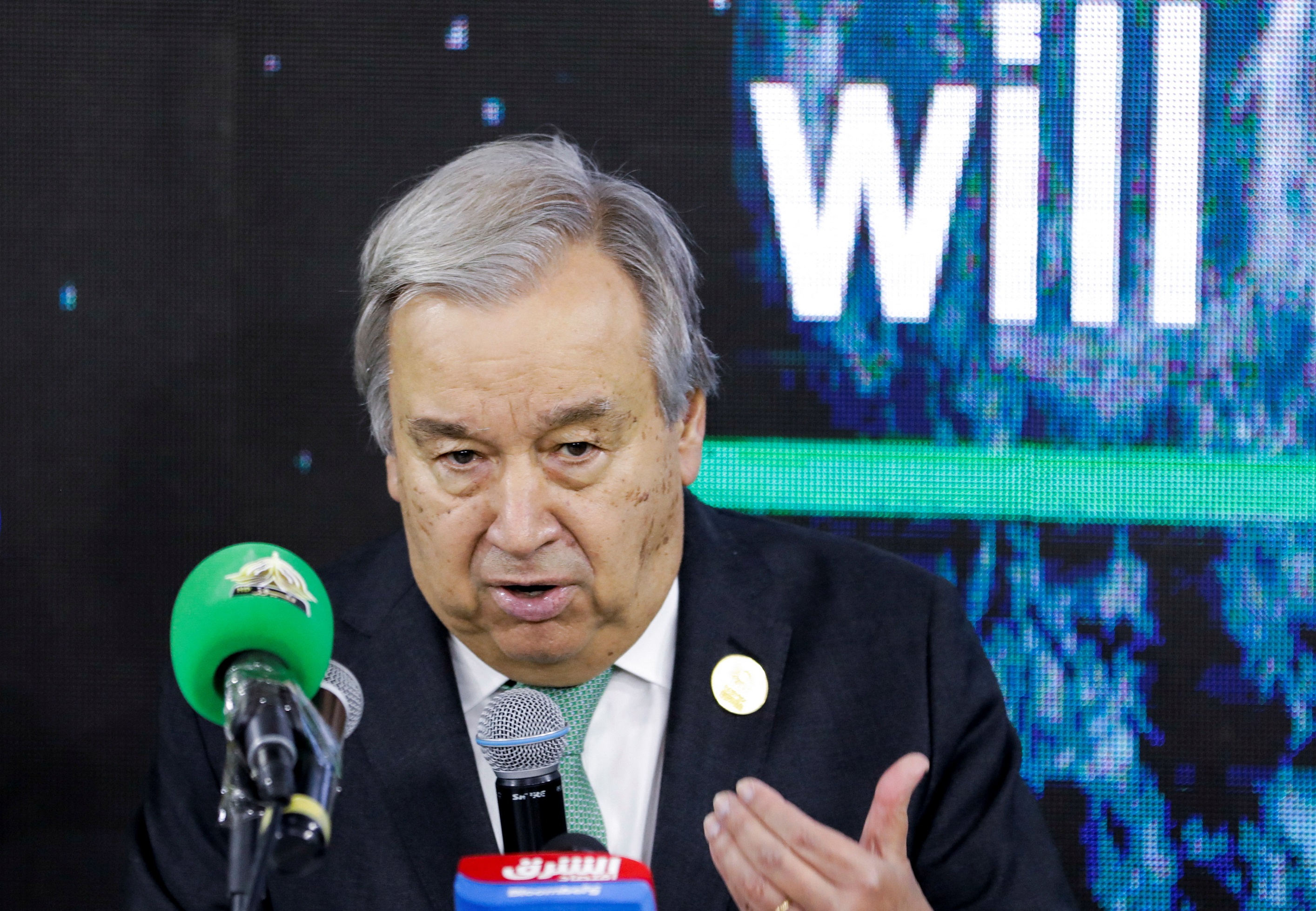 وكان غوتيريش بدأ كلمته بتوجيه الشكر لمصر التي استضافت قمة المناخ ونظمتها بأفضل مستوى كما وجه الشكر للرئيس المصري عبدالفتاح السيسي، على الضيافة الحارة والتنظيم الرائع لـ"cop27".