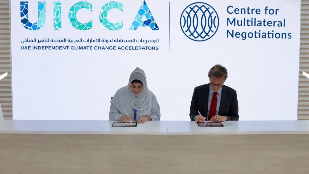 وقعت الشيخة شما بنت سلطان بن خليفة آل نهيان، الرئيس التنفيذي للمُسرعات المستقلة لدولة الإمارات العربية المتحدة للتغير المناخي مذكرة تفاهم مع الدكتور كاي مونهايم، المدير التنفيذي والشريك الإداري في مركز المفاوضات متعددة الأطراف (CEMUNE) في الجناح الإماراتي ضمن مؤتمر الأطراف «كوب 27».