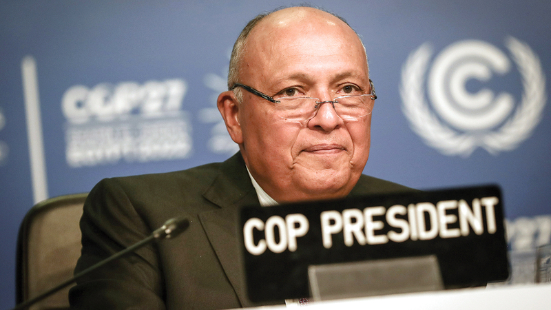 وقال رئيس مؤتمر الأطراف حول المناخ في شرم الشيخ، سامح شكري، خلال جلسة عامة أمام المندوبين، «لاأزال قلقاً من عدد المسائل غير المبتوت بها، ولاسيما المسائل المالية وتخفيف المخاطر»، خفض انبعاثات غازات الدفيئة، والخسائر والأضرار الناجمة عن التغير المناخي.