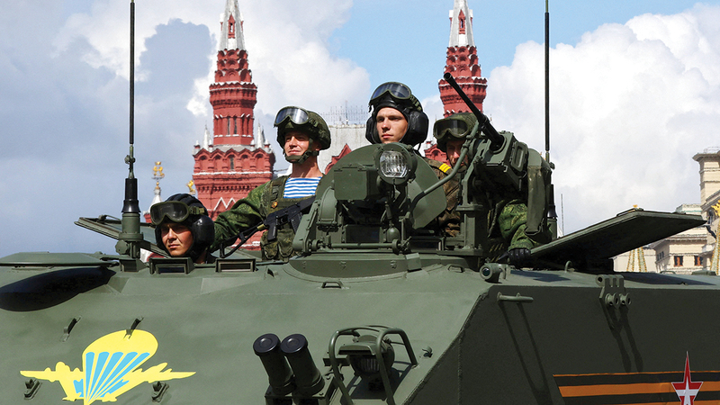 مدرعة روسية خلال عرض عسكري في موسكو. رويترز