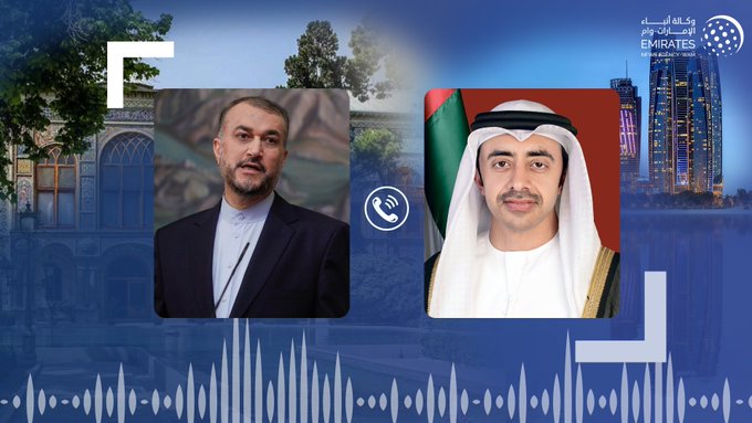 عبدالله بن زايد يتلقى اتصالا هاتفيا من وزير خارجية إيران