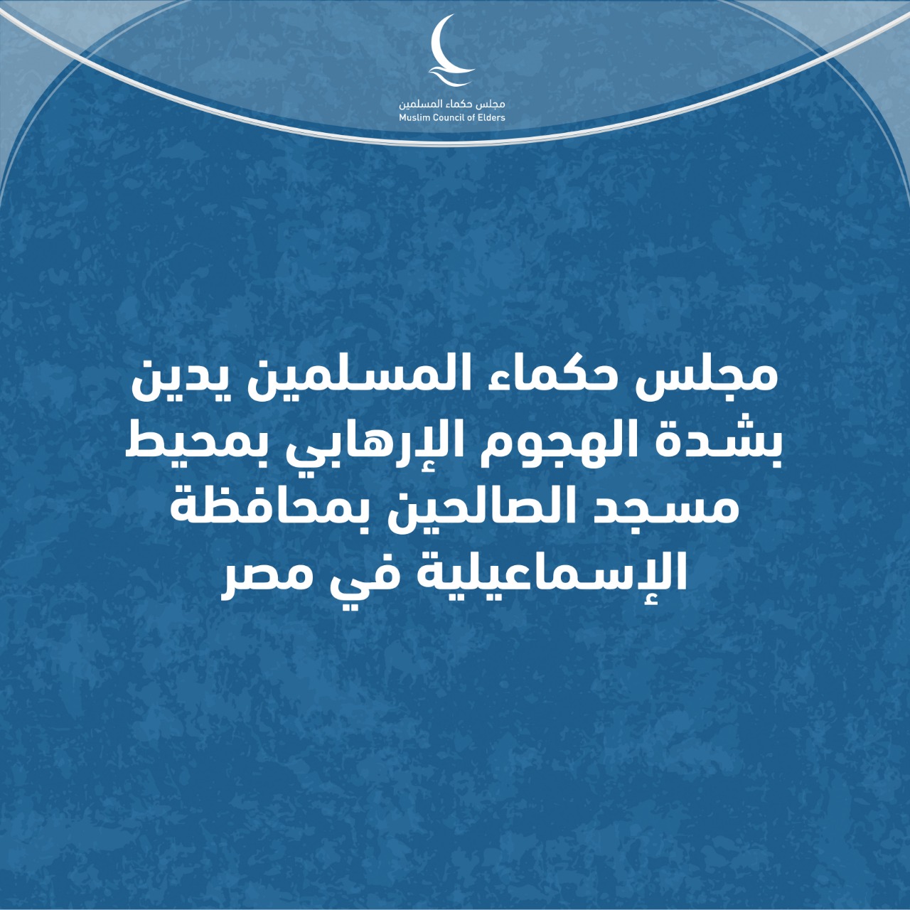 دان مجلس حكماء المسلمين برئاسة الإمام الأكبر أحمد الطيب، شيخ الأزهر الشريف، رئيس المجلس، الهجوم الإرهابي الذي استهدف نقطة تفتيش أمنية بمحيط مسجد الصالحين في محافظة الإسماعيلية بجمهورية مصر العربية، وأسفر عن سقوط عددٍ من الشهداء والمصابين.