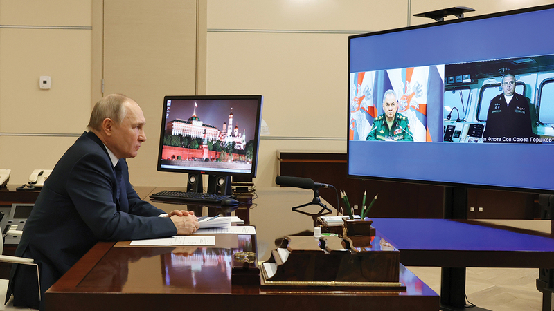 وفي إشارة إلى الغرب بأن روسيا لن تتراجع، أرسل الرئيس الروسي فلاديمير بوتين فرقاطة يوم الأربعاء إلى المحيط الأطلسي مسلحة بصواريخ كروز من الجيل الجديد التي يمكنها قطع مسافات بسرعة تفوق سرعة الصوت بخمس مرات.