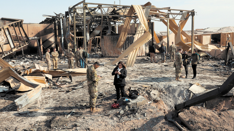 قاعدة عين الأسد الجوية في غرب العراق بعد الهجوم الصاروخي الإيراني عليها. إي.بي.إيه