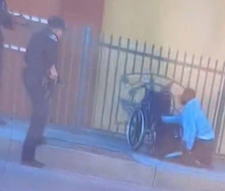وبحسب شرطة هانتغتون بارك وهي مدينة صغيرة واقعة في ضاحية لوس إنجلوس، فقد تدخّل عناصرها خلال هجوم بسكّين من قبل رجل على كرسي متحرّك.
