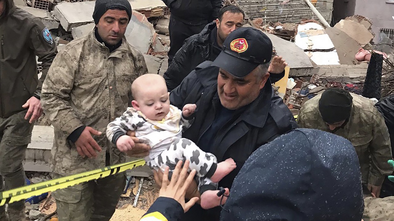 نشرت وكالة "أسوشيتد برس" صورة لإنقاذ طفل رضيع من مبنى مدمر في مدينة ملطية التركية شرق الأناضول.