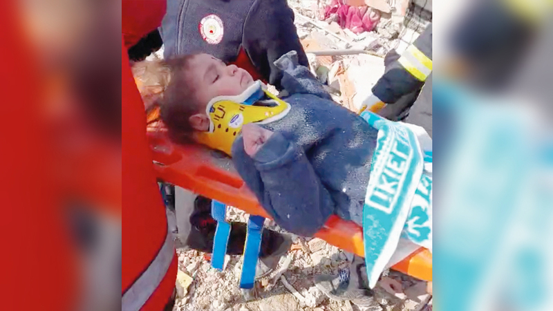 ذكرت محطة «تي آر تي» الحكومية التركية، أمس، أنه تم إنقاذ رضيع يبلغ من العمر سبعة أشهر من تحت الأنقاض في جنوب شرق تركيا، بعد نحو ستة أيام من الزلزال.