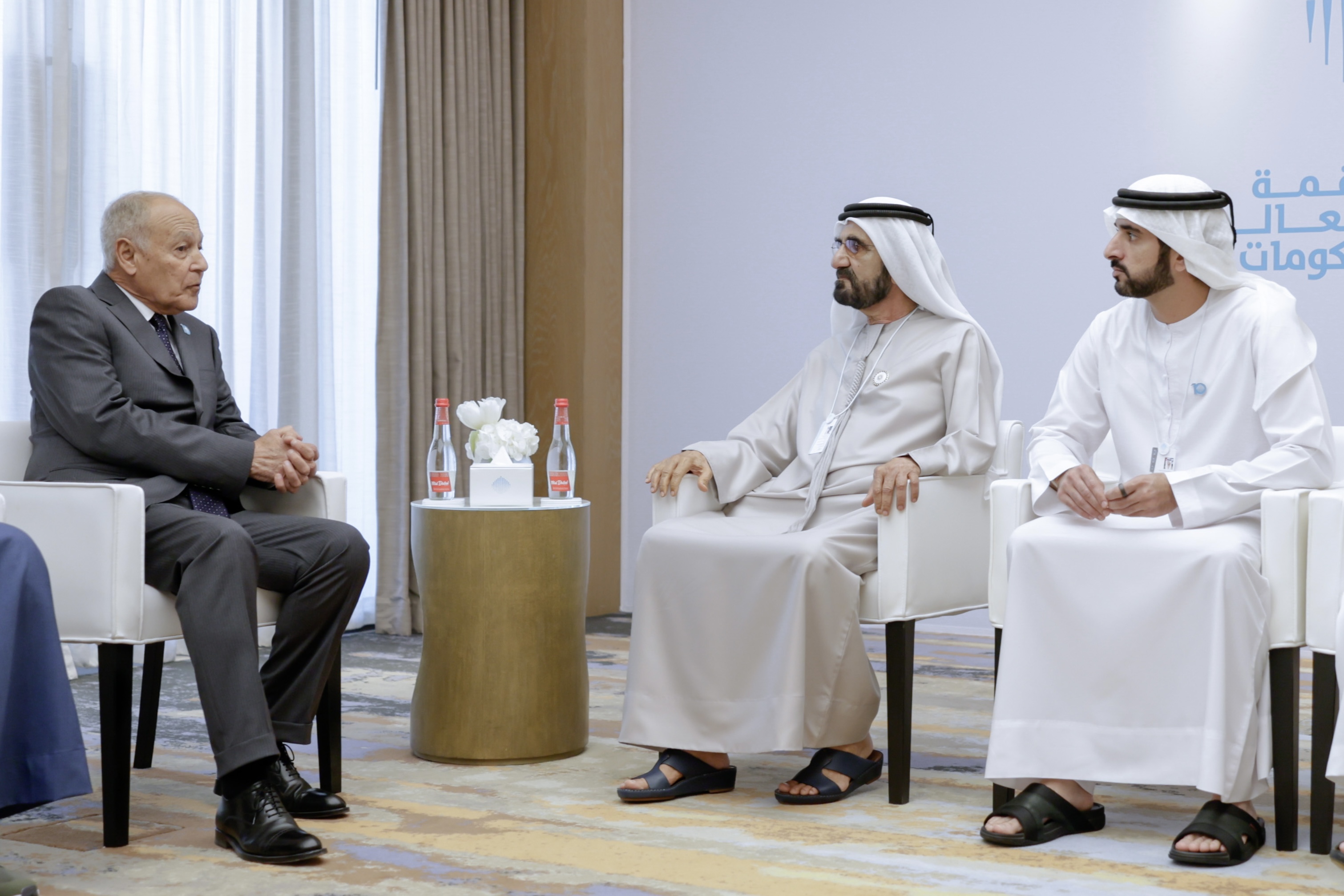 استقبل صاحب السمو الشيخ محمد بن راشد آل مكتوم، نائب رئيس الدولة رئيس مجلس الوزراء حاكم دبي، بحضور سمو الشيخ حمدان بن محمد بن راشد آل مكتوم، ولي عهد دبي، أحمد أبو الغيط، الأمين العام لجامعة الدول العربية وذلك على هامش القمة العالمية للحكومات 2023 في دبي.